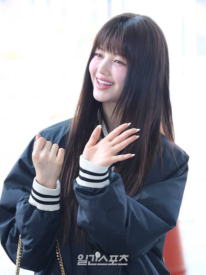 뉴진스 다니엘이 22일 오후 해외 일정 참석차 인천국제공항을 통해 대만으로 출국 전 포즈를 취하고 있다.