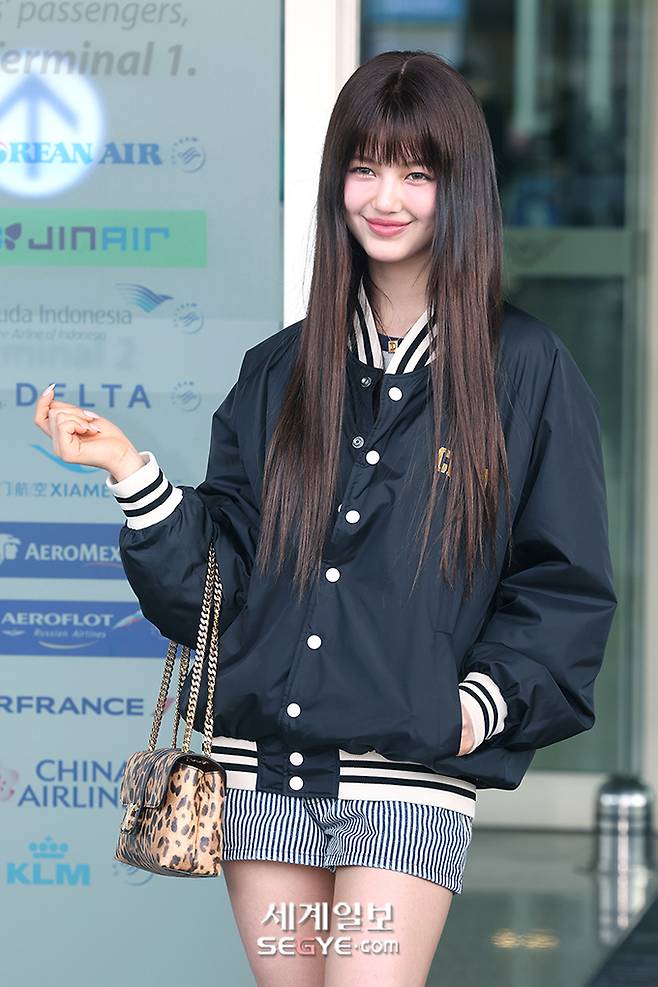 그룹 뉴진스 다니엘이 해외 일정을 위해 22일 오후 인천국제공항을 통해 출국하고 있다.
