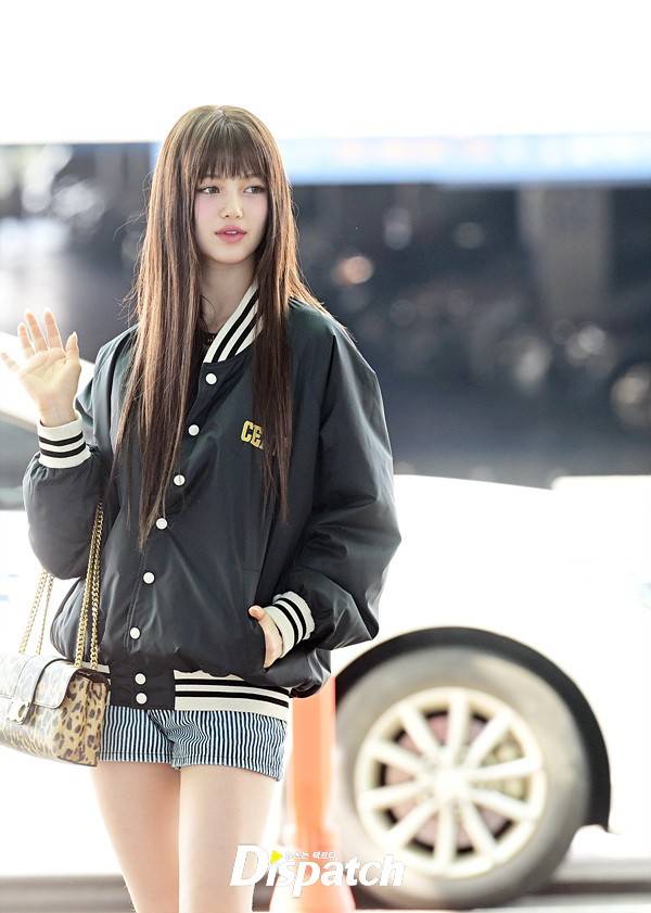 다니엘은 야구재킷과 핫팬츠로 상큼한 공항패션을 완성했다. 요정같은 비주얼과 상큼한 미소가 돋보였다.