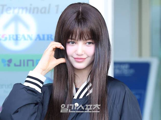 뉴진스 다니엘이 22일 오후 해외 일정 참석차 인천국제공항을 통해 대만으로 출국 전 포즈를 취하고 있다.