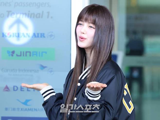 뉴진스 다니엘이 22일 오후 해외 일정 참석차 인천국제공항을 통해 대만으로 출국 전 취재진을 향해 이야기하고 있다.