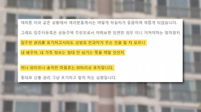 글쓴이는 이 때문에 입주자 등록을 할지 말지 고민이 된다며, 어떻게 하면 좋을지 의견을 구했는데요.