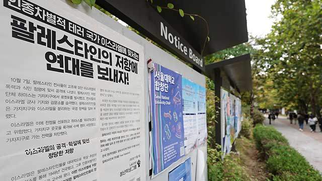 서울대 팔레스타인 연대 동아리는 오늘(23일) 성명을 내고 "포스터를 훼손한 사람이 다름 아닌 서울대학교 교수라는 사실에 충격을 금할 수 없다"며 "학교 당국은 A 교수를 엄중히 징계해야 한다"고 규탄했습니다.