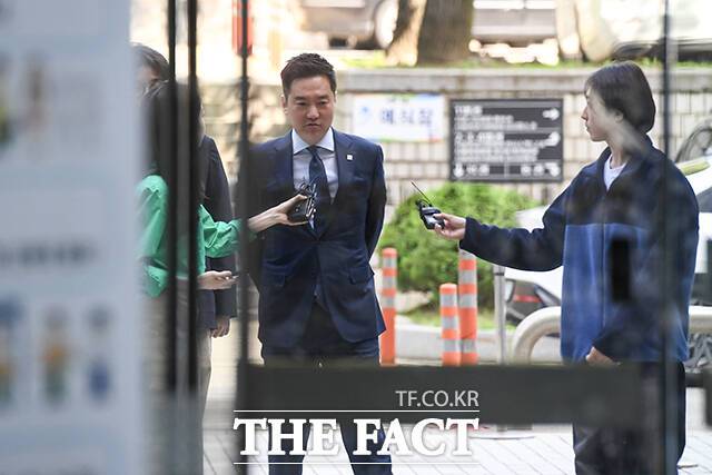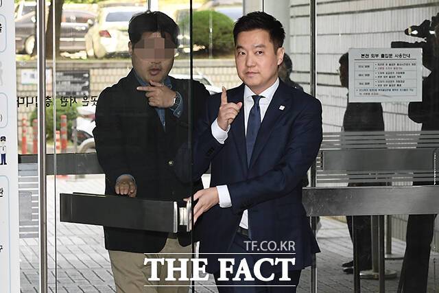 [더팩트ㅣ장윤석 기자] 김세의 가로세로연구소 대표(왼쪽)와 강용석 변호사가 23일 오전 서울 서초구 중앙지방법원에서 조국 전 법무부 장관 딸 조민 씨 명예 훼손 혐의 2심 선고 공판에 출석하고 있다.