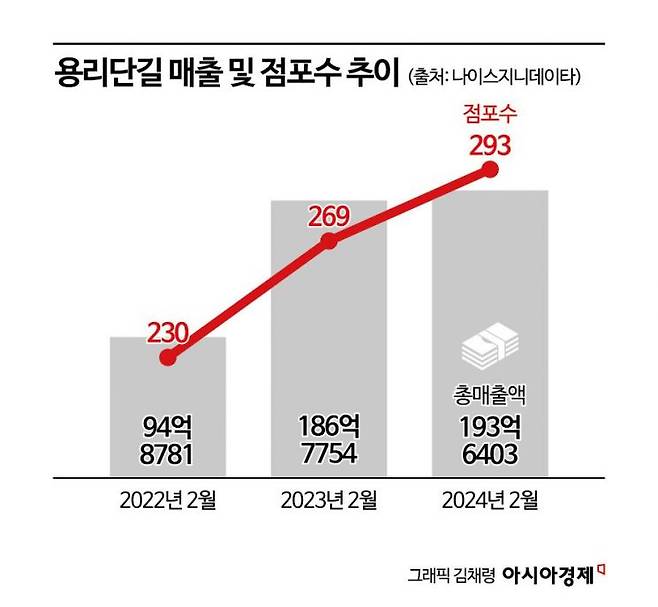 이후 디지털 엔터테인먼트 기업 샌드박스(2020년), 연예기획사 하이브(2021년), 웰컴금융그룹(2022년) 등 대·중견기업이 잇달아 용산에 자리 잡았고, 탄탄한 배후수요를 갖춘 인기 상권으로 발돋움하게 됐다. 올해 2월 기준 용리단길에는 293개의 점포가 들어섰다. 2022년 같은 달(230개)과 비교해 27%(62개) 증가했다.