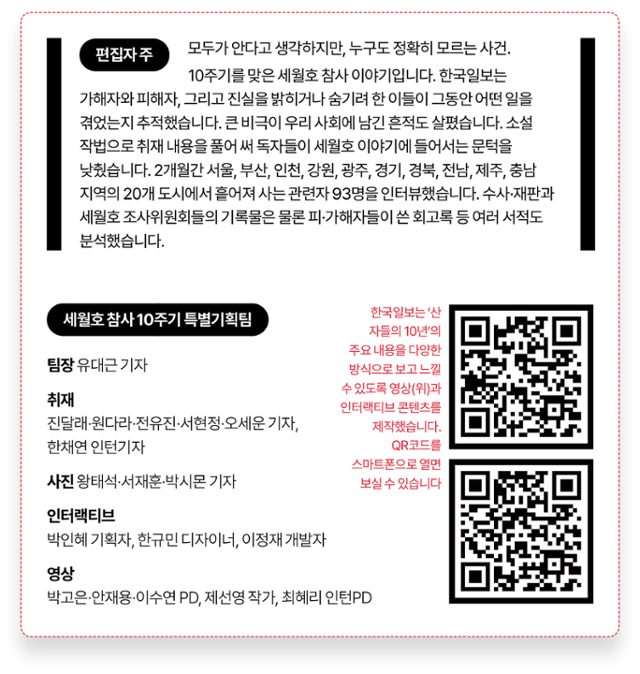 ☞<세월호 참사 10주기-그날의 책임자들, 저울은 공정했을까> 인터랙티브 콘텐츠 보기https://interactive.hankookilbo.com/v/sewol/