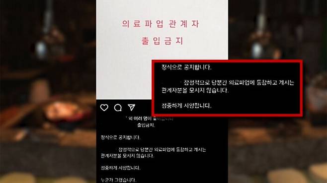 '의료파업 관계자 출입금지' 서울의 한 유명 식당이 소셜미디어에 직접 올린 공지문입니다.