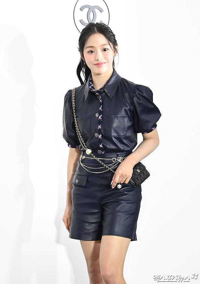 이날 행사에 참석한 뉴진스 민지가 포토타임을 갖고 있다.