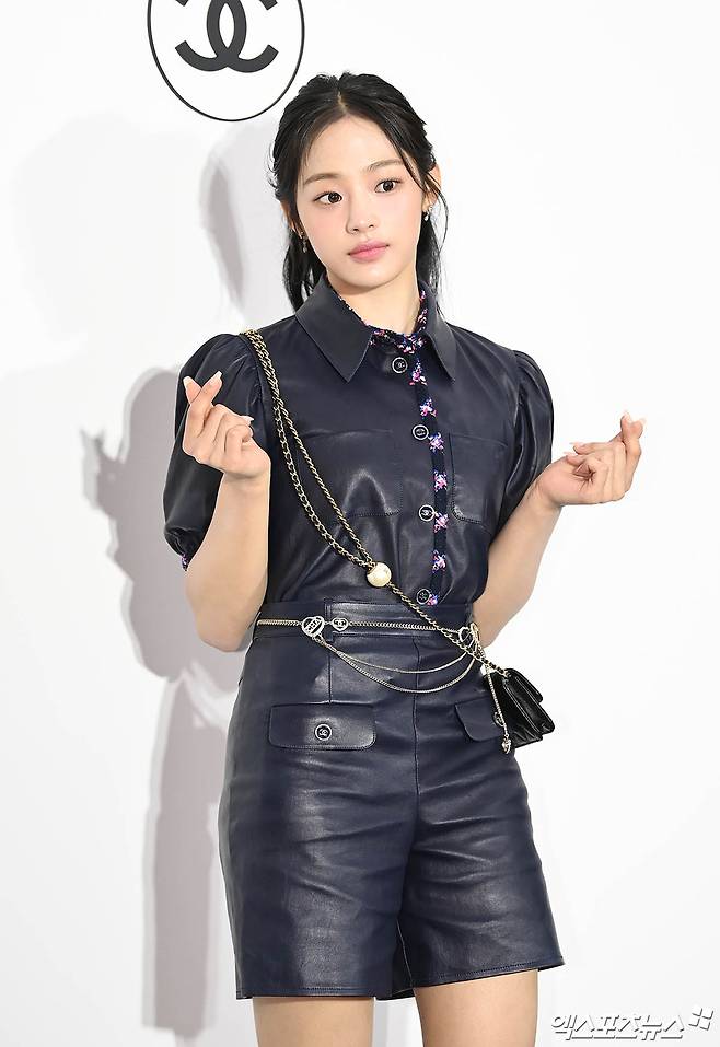 이날 행사에 참석한 뉴진스 민지가 포토타임을 갖고 있다.