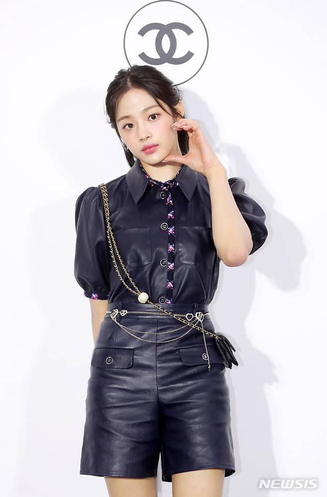 [서울=뉴시스] 김혜진 기자 = 그룹 뉴진스 민지가 23일 오후 서울 성동구 인근에서 열린 샤넬 루쥬 알뤼르 팝업 행사에서 포즈를 취하고 있다. 2024.04.23. jini@newsis.com