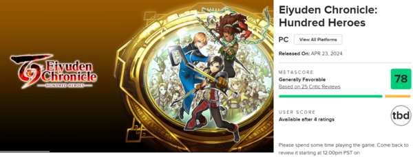 환상수호전 시리즈의 정신적 후속작으로 기대를 모았던 래빗 앤드 베어 스튜디오 '백영웅전'이 PC 버전 기준 메타크리틱 78점을 기록했다.