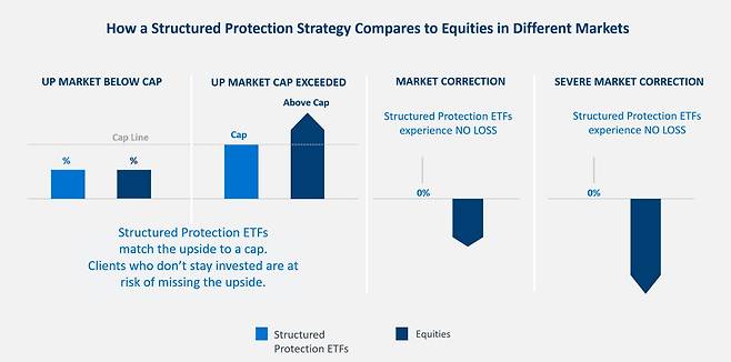 칼라모스의 ETF 부문 책임자인 매트 카우프만은 "오늘날 무위험 금리(미 국채 금리)가 5%대에 육박하는 상황에서 옵션 기반 상품을 활용해 100% 원금 보장을 할 수 있다"며 "또 풋옵션을 매수할 때 발생하는 프리미엄 비용은 금리가 오를수록 저렴해진다"라고 설명했다.