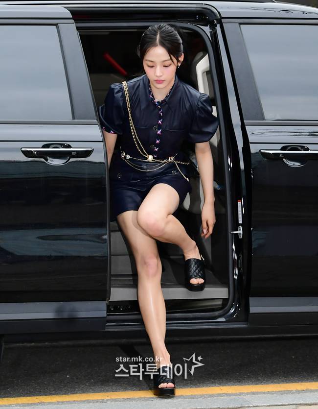 ↑그룹 뉴진스 민지가 차량에서 하차하고 있다.