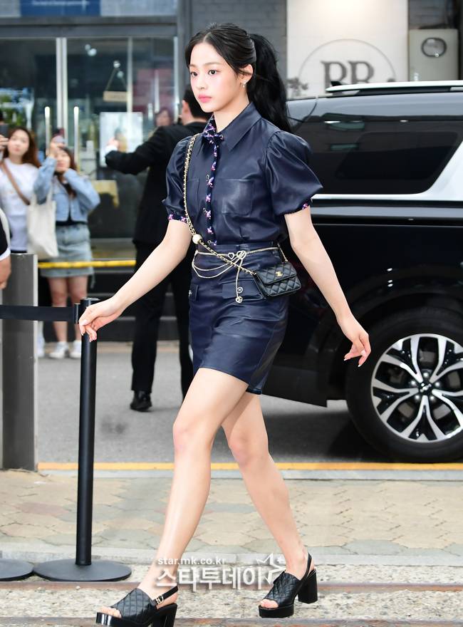 ↑ 그룹 뉴진스 민지가 행사장으로 입장하고 있다.