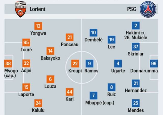 이 매체는 PSG가 로리앙을 상대로 하무스가 공격수로 나서고 음바페와 뎀벨레가 측면 공격을 이끌 것으로 예측했다. 이강인, 우가르테, 루이스가 중원을 구성하고 멘데스, 에르난데스, 슈크리니아르, 하키미 또는 무키엘레가 수비진을 구축할 것으로 예측했다. 골문은 돈나룸마가 지킬 것으로 점쳤다.