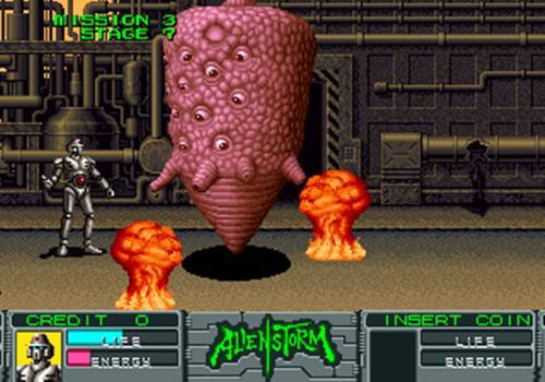 검떠 : '에일리언 스톰'은 1999년도에 세가에서 제작한 오락실 용 벨트 스크롤 액션 게임이죠. 플레이 가능한 캐릭터는 남자 캐릭터인 고든과 여자 캐릭터인 칼라, 그리고 로봇 캐릭터인 스쿠터가 있습니다.
