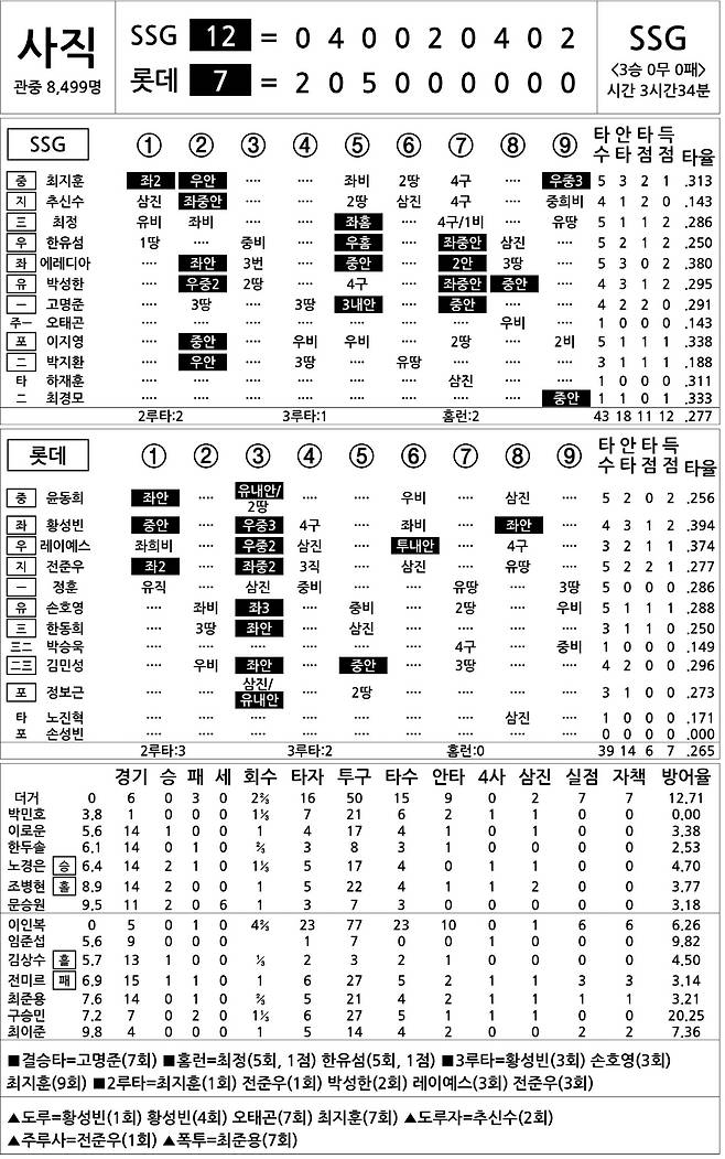 [2024 KBO리그 기록실] SSG vs 롯데 (4월 24일)