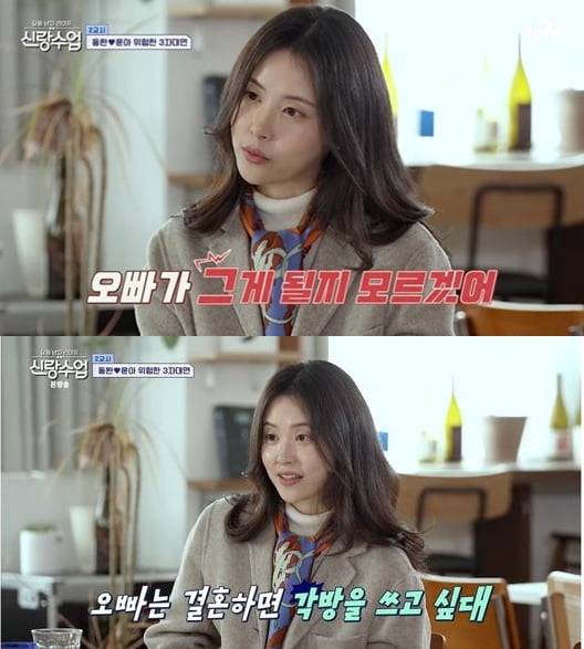 그러면서 “오빠는 결혼하면 각방을 쓰고 싶다고 생각하는데 난 생각이 다르다. 그런데 오빠는 ‘윤아도 그런 거 좋아하지 않아?’라고 유도심문 하듯 말한다”라고 토로했다. 스튜디오에서 이를 지켜보던 김동완은 “윤아가 저렇게 생각하는지 몰랐다”며 민망한 듯 웃었고, 서윤아의 고민을 접수한 조현아는 “내가 그분을 샅샅이 파악해보겠다. 그리고 마음에 들면 ‘형부’라고 부르겠다”라고 둘만의 약속을 했다.