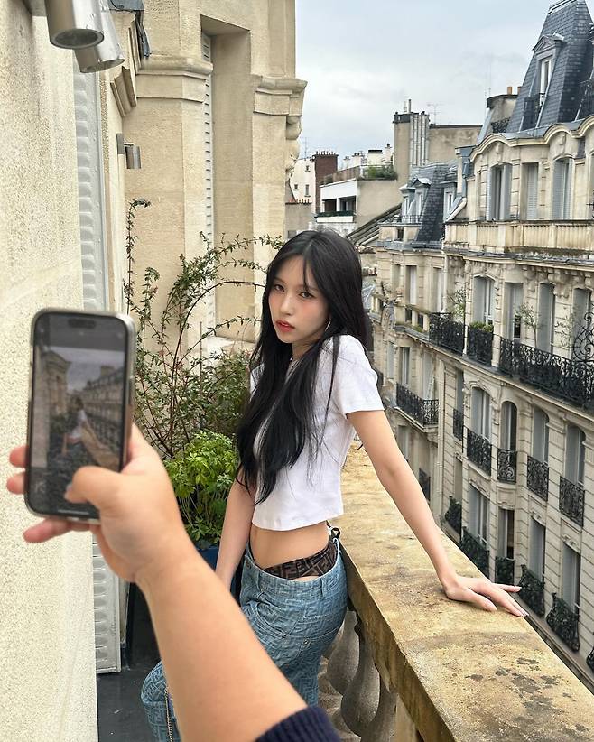 사진 속 미나는 화보를 촬영하고 있는 모습. 특히 바지 위로 언더웨어를 노출한 파격 패션으로 시선을 강탈했다.