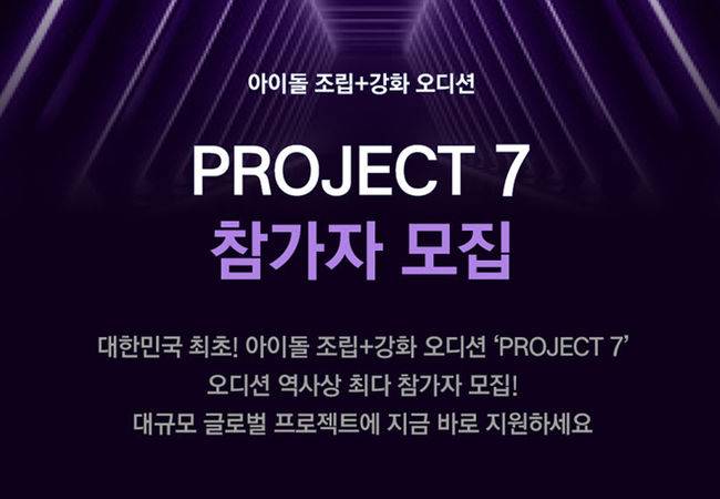 대한민국 아이돌 오디션 역사상 최다 참가자로 시작할 최대 규모 글로벌 보이그룹 오디션 프로그램 'PROJECT 7(가제)'이 올 하반기 론칭을 확정, 지원자 모집에 돌입했다.