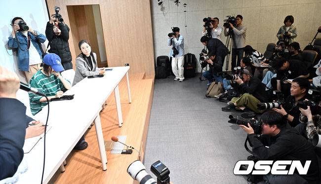 [OSEN=조은정 기자]하이브 산하 레이블 어도어의 대표 민희진이 25일 오후 서울 서초구 한국컨퍼런스센터에서 경영원 탈취 시도 의혹 관련 긴급기자회견을 열었다.