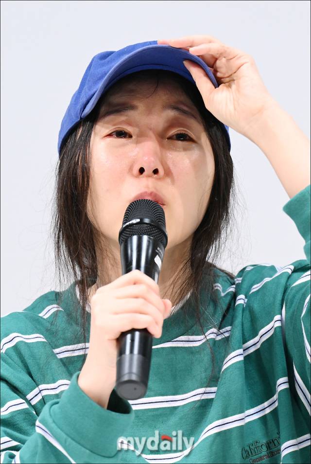 [MD포토] 어도어 민희진 대표, '뉴진스 얘기에 눈물이 가득'
