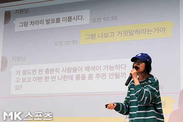 민희진 대표가 하이브 대표와 나눈 카톡 대화를 공개하고 있다.