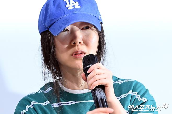 조심스럽게 등장한 민희진은 공식석상에는 어울리지 않는 볼캡에 맨투맨 티셔츠를 입고 등장해 놀라움을 자아냈다. 뿐만 아니라 머리 바깥으로도 계속 빠져나온 머리카락은 부산스러움을 더했다.