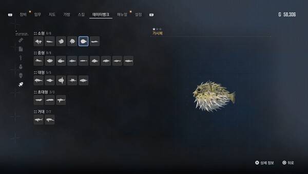 가시복 획득 → 채널메기 획득 → 환상의 미끼 획득 → 고래상어 획득