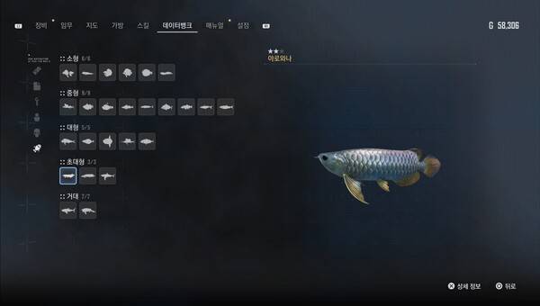 ④ 초대형: 백상아리, 아로와나, 피라루크