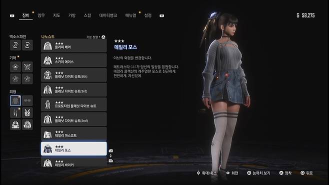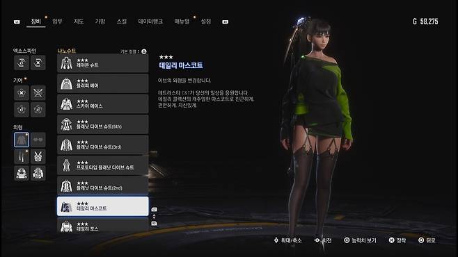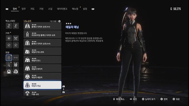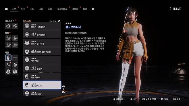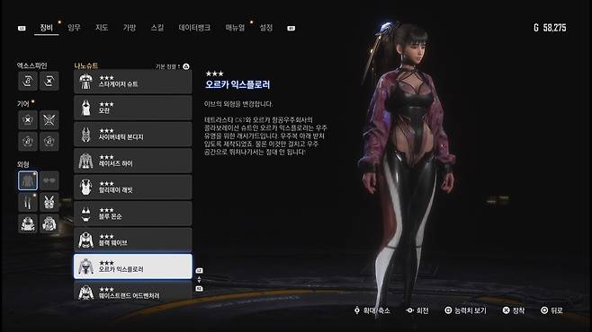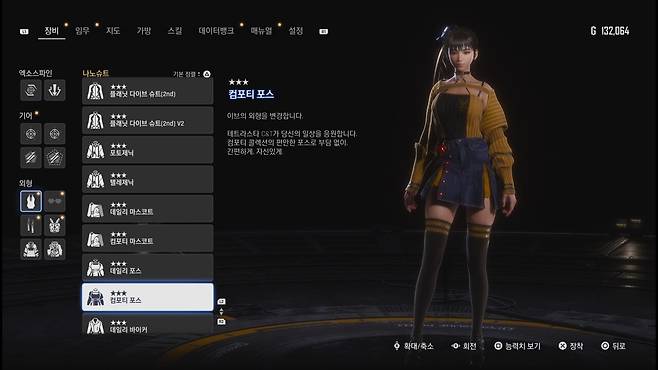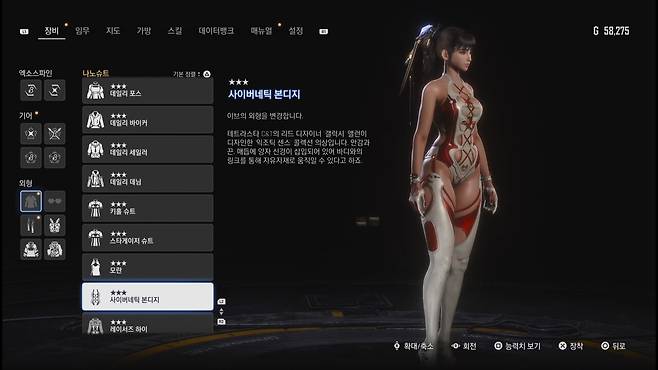 바로 이브에게 다양한 나노슈트를 선물하는 것이다. 실제로 본편을 시작하면 이브의 나노슈트를 수집하겠다며 기대하는 게이머들도 커뮤니티에서 쉽게 찾아볼 수 있다. 기자도 트레일러에서 본 '레드 패션'을 보며 이브에게 꼭 입혀주겠다는 마음으로 게임을 시작했다.