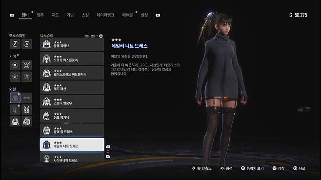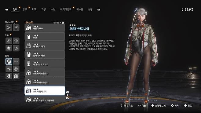 바로 이브에게 다양한 나노슈트를 선물하는 것이다. 실제로 본편을 시작하면 이브의 나노슈트를 수집하겠다며 기대하는 게이머들도 커뮤니티에서 쉽게 찾아볼 수 있다. 기자도 트레일러에서 본 '레드 패션'을 보며 이브에게 꼭 입혀주겠다는 마음으로 게임을 시작했다.
