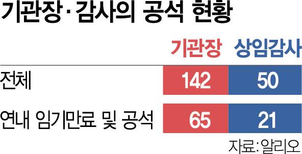 기관장 143곳중 65곳 올해 임기 종료