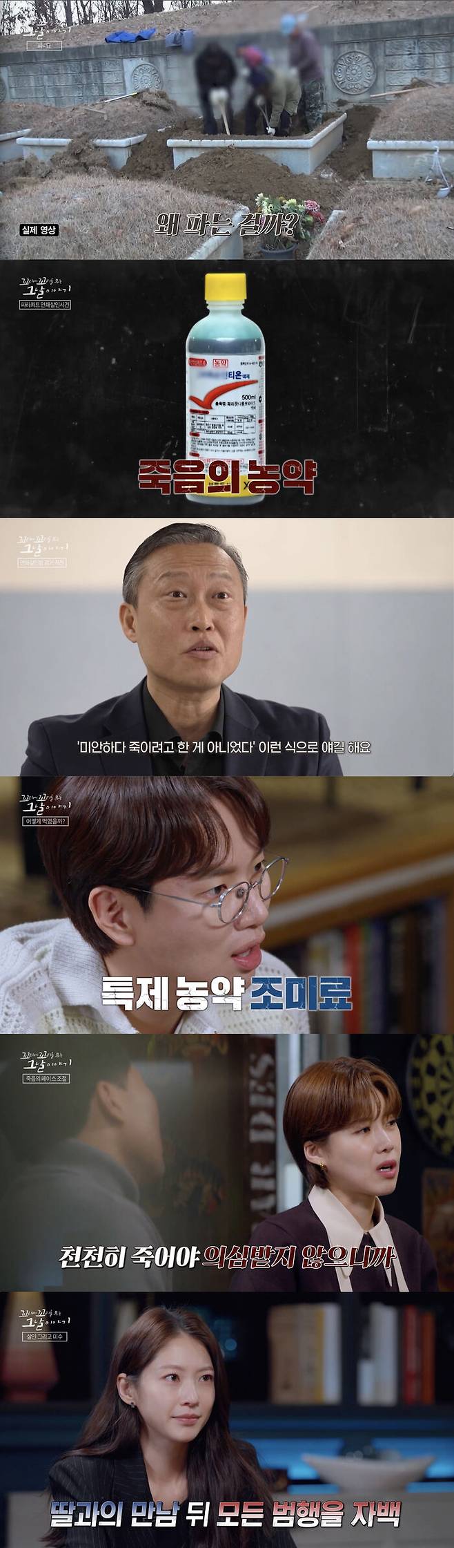 이에 경찰은 부검을 통해 사인을 확인하기 기로 한 것이다. 그렇게 파묘를 하게 된 것. 부검을 진행하던 도중 노 씨의 딸이 입원한다는 이야기가 제보로 들어왔다. 이에 홍 교수는 소변을 확보하면 파라콰트가 나올 것이라고 했고 형사들은 급히 딸의 소변을 확보했다.