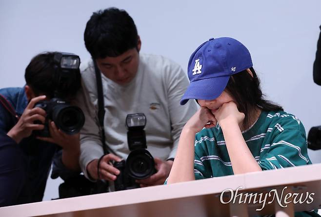 | ▲ 많은 사진기자들에 당황한 어도어 민희진 대표 하이브가 자회사 어도어의 경영권 탈취 시도 여부에 대한 중간 감사결과를 발표한 25일 오후 민희진 어도어 대표가 서울 강남구의 한 센터에서 긴급 기자회견을 열기에 앞서 많은 사진기자들이 참석한 것을 예상하지 못한 듯 당황스런 미소를 짓고 있다. |