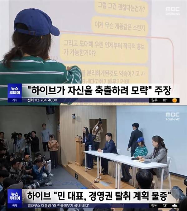 | ▲ 지난 25일 진행된 민희진 어도어 CEO 기자회견을 소개한 TV 보도 화면 |