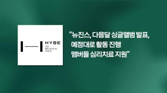 원래 뉴진스는 오는 27일 뮤직비디오를 공개하고 다음달 컴백할 예정이었는데, 하이브는 예정대로 진행될 예정이라고 밝혔고, 뉴진스 맴버들에 대해서 심리치료를 지원할 예정이라고 밝혔습니다.