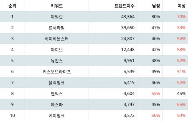 아일릿이 걸그룹 트렌드 지수 1위를 차지했다.