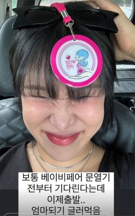 공개된 사진에는 임산부 뱃지를 든 채 베이비페어로 이동 중인 랄랄의 모습이 담겨있다.