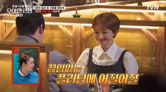 맞선 상대는 "어플 사진에서 봤을 때 아닐 줄 알았는데 진짜 배우님이 나올 줄 몰랐다. 진짜 예쁘시다"라고 신기해했다.