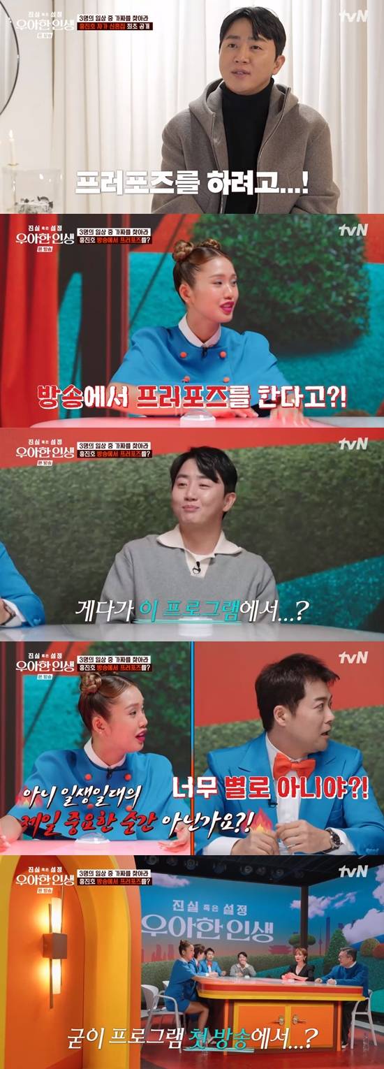 홍진호는 프러포즈하는 순간을 영상에 담았다. 그러자 전현무는 "너무 별로 아닌가? 뭐 하는 짓이냐"고 지적했다.