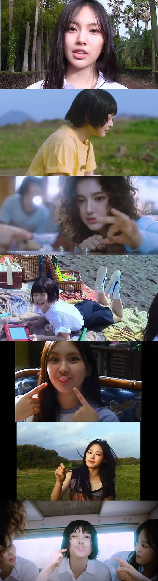 이날 공개된 뮤직비디오 속 뉴진스는 밝은 얼굴로 화사한 미모를 자랑한다.