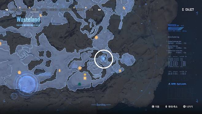 자원을 찾아 황무지를 탐사하던 중 이상한 장소를 발견했습니다.