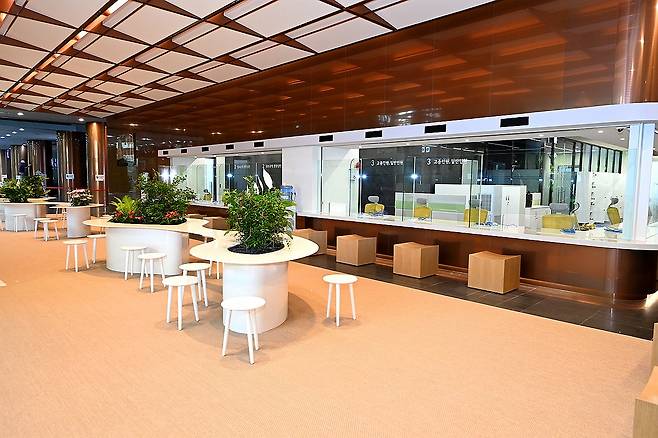 (서울=연합뉴스) 서울시가 서울 중구 서울시청 1층 로비를 12년 만에 리모델링하고 오는 29일부터 새로운 모습으로 시민을 맞이한다고 28일 밝혔다. 사진은 서울시청 열린 민원실 전경. 2024.4.28 [서울시 제공. 재판매 및 DB 금지]