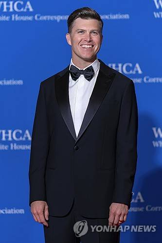 Comedian Colin Jost poses for photographers as he arrives at the annual White House Correspondents' Association Dinner in Washington, Saturday, April 27, 2024. (AP Photo/Jose Luis Magana)
