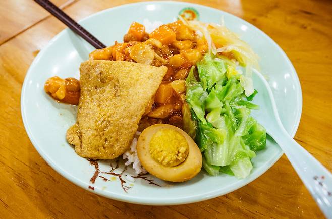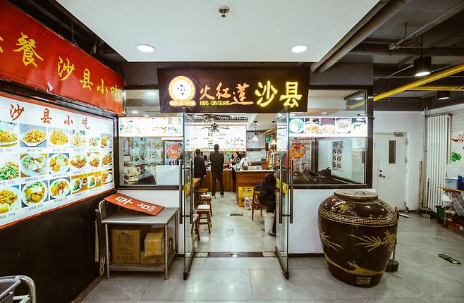 이곳에서 가장 '현지'에 가까운 음식을 찾는다면 '호우홍리안'을 추천한다. 천천가 아케이드에 입점해있는 아주 작은 현지인 밥집이다. 추천 메뉴는 우선 궁보계정. 궁보계정은 닭고기와 캐슈넛, 고추를 넣고 볶은 쓰촨 요리다. 중국에서는 '궁바오지딩'이라고 부른다. 보통 매운맛에 집중하는데, 이곳의 궁보계정은 새콤한 맛이 일품이다. 밥과 비벼 먹으면 완벽한 궁합을 이룬다. 간장에 절인 계란은 필수적으로 추가해야 한다.