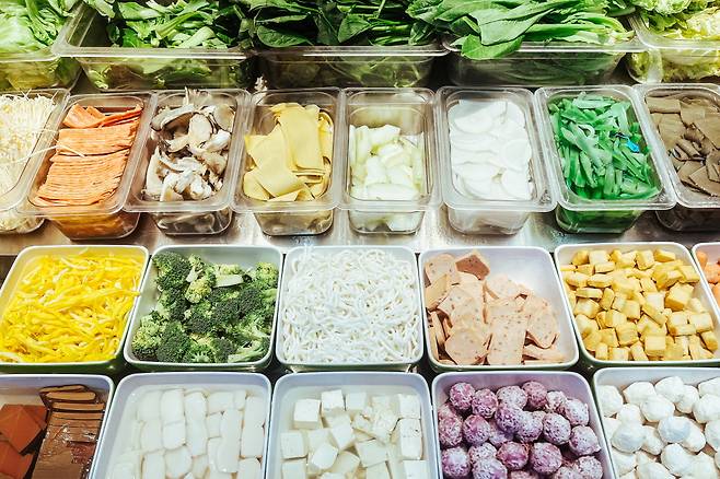 먼저 식당에 있는 큰 접시에 먹고 싶은 재료를 넉넉히 담는다. 보통 숙주, 얼린 두부, 포두부, 고수, 버섯, 양고기 등이 대표적인 재료다. 재료를 담은 접시의 무게로 계산을 한다. 우리나라에서는 아무리 적게 담아도 만원은 가볍게 넘어가는데, 중국 현지에선 아무리 많이 담아도 만원을 넘기기 힘들다. 베이징 여행 시 많이 먹어둬야 하는 이유다.