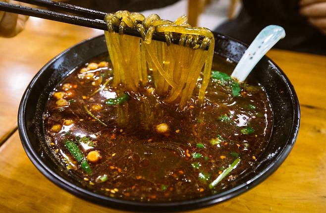 수안라펀도 매력적이다. 중국에서는 '쏸라펀'이라고 발음하면 쉽게 주문할 수 있다. 빨간색 당면 국수인데, 식초와 고추기름을 이용해 국물을 낸다. 그도 그럴 것이 '쏸(酸)'은 신맛을 의미하고, '라(辣)'는 매운 맛을 의미한다. '펀(粉)'은 당면을 뜻한다. 수안라펀에 들어가는 당면은 대부분 고구마 전분을 이용한 넓적한 당면을 사용한다. 넓은 면적에 소스가 잘 묻어나오기 때문이다. 매콤하면서도 시큼한 게 식욕을 돋운다. 이화원을 돌아보기 전 들러 허기진 배를 채우는 것을 추천한다.