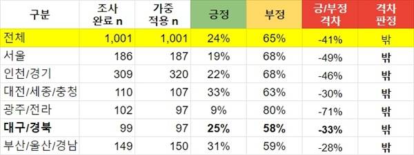 대구·경북 국정 긍정률, 2016년 대폭락 때보다 낮다