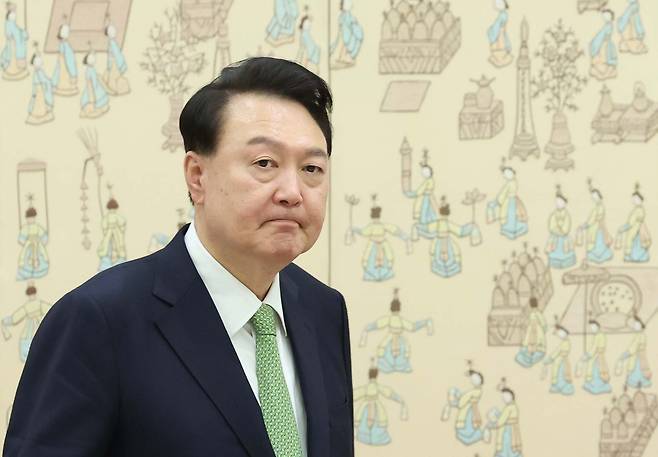| ▲ 윤석열 대통령이 지난 26일 서울 용산 대통령실 청사에서 열린 주한대사 신임장 제정식에 입장해 각국 대사로부터 신임장을 전달받기 위해 기다리고 있다. |